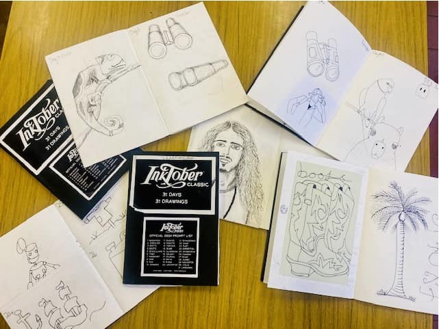 During the month of October, year 11 GCSE art students have been completing the Inktober 2024 Classic Drawing Challenge. Using a prompt list, pupils had to ‘ink’ a drawing for each day in the month of October. The challenge is to complete 31 drawings in black pen creating original illustrations.